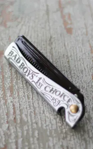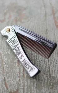 Den sammenleggbare kammen har et håndtak laget av matt sølvfarget rustfritt stål, utsmykket med lasergraveringer på begge sider: "Bad Boys 1st Choice" på den ene siden og "Greaser's Finest" på den andre. Selve kammen er mørkebrun og laget av antistatisk acetat. De avrundede tennene glir jevnt gjennom hår eller skjegg og er plassert omtrent 2 mm fra hverandre. Flaskeåpner er integrert i metallhåndtaket.